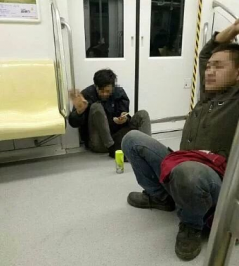 近日,网友在南京地铁上看到两个席地而坐的民工。车厢里有很多空位,两人其实应该很困了,不停地打着哈欠。“他们可能觉得自己身上脏吧,一直都没有坐到座位上,有点心疼他们,觉得他们才是最可爱的人。”