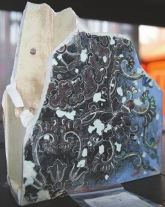 延清堂大殿粉彩地砖,表面呈黑色,是因为过火的缘故。圆明园又称圆明三园,是清代一座大型皇家宫苑,它坐落在北京西郊,与颐和园毗邻,由圆明园、长春园和万春园组成。