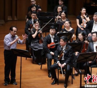 何占豪牛小北摄中新网北京7月9日电(记者高凯)伴随着《梁祝》的经典旋律,国家大剧院艺术普及经典品牌"周末音乐会"迎来第450场特别策划系列演出。7月9日上午,《梁祝》作者之一、著名作曲家何占豪做客周末音乐会,为现场观众解读其经典创作——小提琴协奏曲《梁山