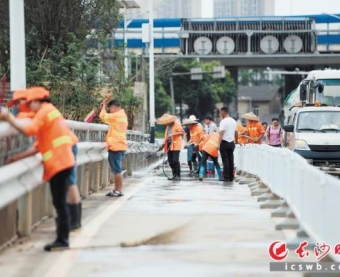 昨日,沙湾路跨圭塘河钢便桥恢复通车,工作人员在冲洗桥面、护栏。长沙晚报记者余劭劼摄7月2日中午,洪峰缓缓从沙湾路跨圭塘河钢便桥路段通过。长沙晚报记者陈飞摄长沙晚报讯(记者唐朝昭通讯员李均荣)经过连夜清运垃圾、消毒防疫、清洗桥身,昨日上午7时,此前因洪