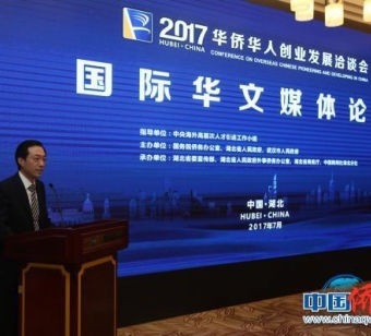中共湖北省委宣传部常务副部长张海明在国际华文媒体论坛上致辞。张畅摄中新网武汉7月8日电(记者郭晓莹梁婷)7月8日,国际华文媒体论坛在武汉举行。来自"一带一路"沿线21个国家30多名华文媒体代表,国内高校专家及主流媒体代表等,围绕"讲好湖北故事·传播湖北声音