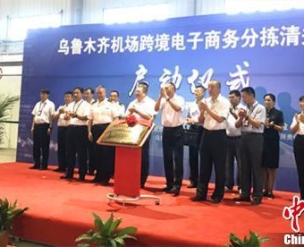 图为新疆乌鲁木齐国际机场跨境电子商务分拣清关中心启动仪式现场。王小军摄中新网乌鲁木齐7月8日电(耿丹丹贺英韩玮琼)"今天的货物约100件,全部发往中亚国家。"8日,在新疆乌鲁木齐国际机场跨境电子商务分拣清关中心,工作人员边查验包括电子产品、生活用品等在