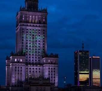 图为5日晚抗议者在华沙市中心的科学文化宫上打出的灯光标语。人民日报华沙7月7日电(记者李增伟)美国总统特朗普6日结束对波兰16个小时的短暂访问,匆匆飞往德国汉堡参加G20峰会。特朗普的这次闪电般访问,在波兰引发颇多分歧和争议。特朗普于当地时间5日深夜抵达