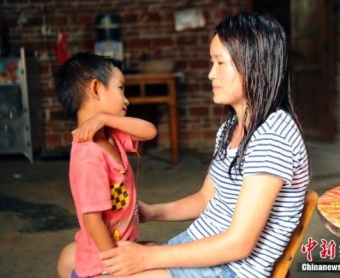 家住广西贵港市港北区根竹镇泗民村的袁玉红,今年33岁,是两个孩子的母亲。去年,由于担心孩子教育出问题,她和丈夫结束了在福建晋江10多年的打工生涯回到贵港。图为每天下班后是袁玉红最幸福的时光,可以陪孩子慢慢成长。 蒋雪林 摄