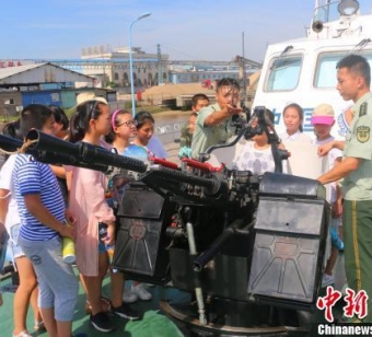 图为:"小候鸟"参观舰艇。何蒋勇摄中新网宁波7月7日电(记者何蒋勇通讯员陈琪高勇刘志壮)7日,浙江海警二支队邀请辖区20余名留守儿童来队开展警营开放日活动,共迎中国航海日的到来。在活动现场,"小候鸟"宁宁笑着对记者说:"很好玩,而且我还认识了很多新朋友。"浙