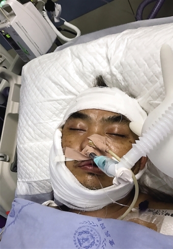 昨日,在渝州路的长城医院内,记者见到了58岁的段海南,他躺在病床上,脖子和背部的伤依然触目惊心,双手也在进行治疗。