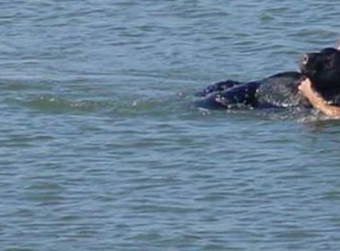 美国佛罗里达州发生了一件怪事,好多人在海岸边看到海里一个男子抱着黑色不明物体拼命的往岸边游。等人们看清后惊叫着:“Oh, my God!”