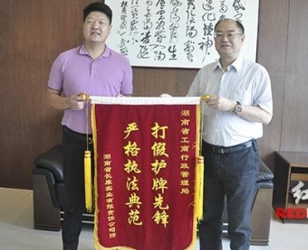 湖南长康实业公司向湖南省工商局赠送锦旗感谢打假护牌