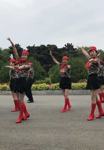 大妈空姐装跳广场舞 网上直播赚人气