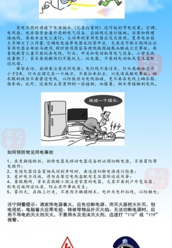 入夏以后气温一路攀升,此时家用电器使用频繁。用电安全关乎切身利益,生活中一些细节稍不注意就会酿成灾祸,特别用电不当,包括电路设置与维护不当,还包括家用电器使用不当。因此一定要防患于未燃,多了解一些应急处理小常识,保护好自己和家人的人身财产安