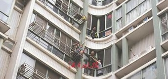 险!小男孩坐上四楼晾衣杆 幸得消防员相救