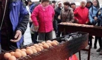 男子街边卖烤鸡蛋,10块钱2串,加调料的方法让人惊讶!围满了人观看!
