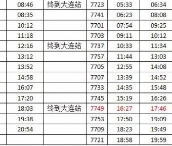 途径庄河北站快铁发车时刻表,2017年7月1日起执行。详情请关注12306。