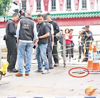 中新网6月16日电据香港《文汇报》报道,昨日(15日)中午有路人在香港九龙塘歌和老街路中安全岛发现一捆红色疑似爆炸品。该物由6支各长约30cm的圆筒形“炸药条”扎成,外表印有“High Explosive”(高度爆炸性)等英文字样。拆弹车将可疑物品引爆后,证实该6支“
