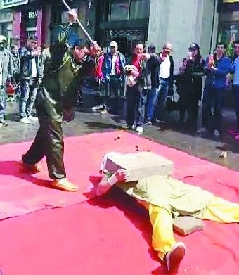 在影视剧中,人们经常能看到这样一些镜头:一个人喉咙顶着一把锋利的红缨枪,双脚蹬地,红缨枪的钢制枪柄随着力量增大慢慢变弯;人躺在地上,胸口放着一块长方形石头,另一个人拿着一把大锤猛力砸向石头,石头应声碎裂成两半,而用胸口擎着石头的人却安然无恙