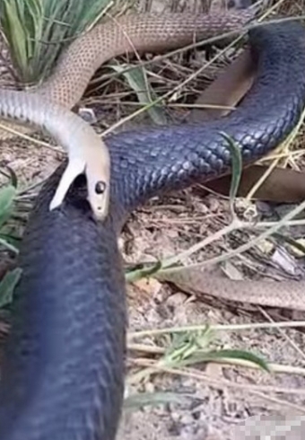 这是一条红腹伊澳眼镜王蛇在吞食东部擬眼镜蛇,东部擬眼镜蛇的最后反击,一切都是徒劳的,动物都是弱肉强食。
