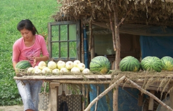 农村妇女路边搭棚卖瓜,起早贪黑一块五一斤,挣得虽少心满意足