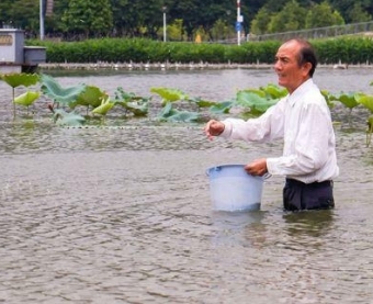 脱下鞋子,挽起裤腿,65岁的华叔手提化肥桶,只身步入荷塘中。6月1日中午,禅城区文华公园内的一幕让不少游园市民纷纷驻足围观,原来这位老伯是这片荷花最初的种植者,趁着荷花盛开之际专程来施肥驱虫,保证荷花开得更持久更漂亮。