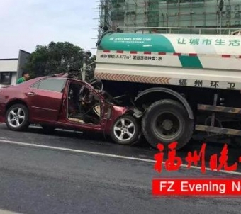 原标题:惨烈!福州连潘高架小车追尾环卫车事故造成1死1重伤