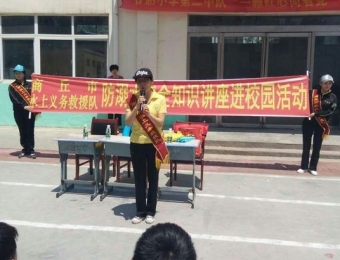商丘市水上救援队员到谷熟镇对中小学生进行防溺水知识宣传