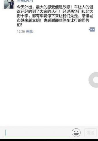 七旬老人发朋友圈赞“车让人”RELEASE:2017-05-24 SEE:8