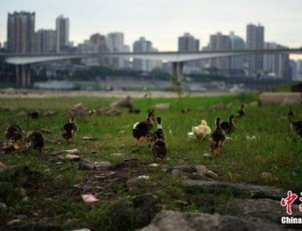 嘉陵江重庆段河床干枯 变市民养鸭地