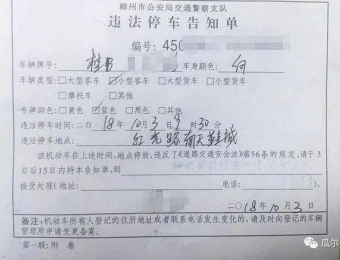 这事儿发生在广西柳州。到了节日,机动车乱停乱放的现象比较严重,10月3日下午1时多,广西柳州市公安局交警支队柳南大队的民警带着辅警,在红光大桥底时,对该区域违法停车的机动车粘贴了违法停车告知单。