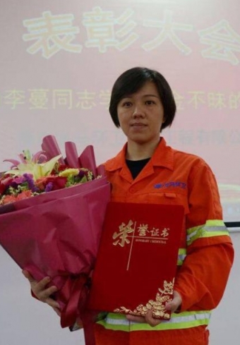 海口环卫工人李蔓拾金不昧获表彰 同事称要以她为榜样