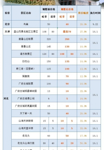 各地按照部署要求,先后降低了一批重点国有景区门票价格。截至9月28日,各地已出台实施或发文向社会公布了981个景区免费开放或降价措施(免费开放74个,降价907个),其中5A级景区159个,4A级景区534个,二者合计693个,占70.6%。降价的907个景区中,降幅超过20