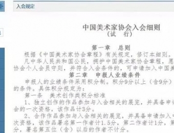 2018年8月23日,中国美术家协会官方发布了最新修订的《中国美术家协会入会细则(试行)》。最新《入会细则》首次启用积分制考核申报人的业绩条件,只要积满9分以上(含9分)即达到申报入会的条件。并且,网上申报是中国美术家协会会员申请入会的唯一途径,保