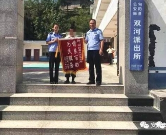 9月10日下午,双河镇檀木村三组村民袁某将一面印有“情系百姓为民服务”的锦旗送到旬阳县公安局双河派出所,并紧紧握住民警的手,激动的说:“多亏你们派出所,我儿子终于有了户口,我再也不用为他上学的事愁了,真的太感谢你们了”。