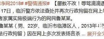 齐鲁网9月19日讯 19日下午,临沂市公安局网络安全保卫支队官方微博@临沂网警巡查执法对外发布:9月17日,临沂警方依法查处并再次行政拘留在网上辱骂滴滴遇害者并扬言对遇害者家属实施极端行为的网民鲁某某。