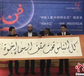 中阿摄影展和书法展启幕 20米《论语》长卷首现成都