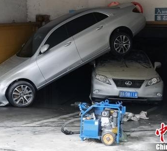 “山竹”引珠江水倒灌 广州部分车库成“湖”一片狼藉