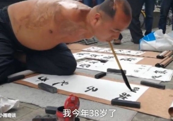 无臂男街头用嘴写字养家,点赞乐观真汉子!