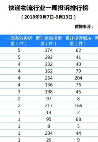 2018年9月7日至9月13日,21CN聚投诉共受理全国消费者对快递物流行业有效投诉量40件。涉及的商家有:顺丰、申通、圆通、天天快递、中通快递、快狗打车、韵达、德邦物流、货拉拉、万象物流、京东物流、品骏快递、百世快递、闪送、日日顺、优速快递查看21CN聚投