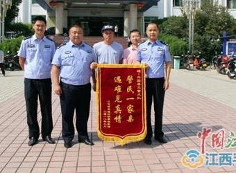 9月11日上午,胡孝斌在村干部的陪同下,带着印有“警民一家亲,遇难见真情”的锦旗来到兴国县公安交管大队,向帮助他渡过难关的干部民警表示真挚的感谢,鲜艳的锦旗在阳光下显得格外抢眼,一面锦旗背后,有着大队全体扶贫干部的汗水,更有全体干部民警服务群