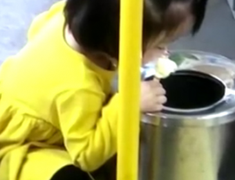 感动!2岁女童乘公交怕雪糕滴落弄脏地板 蹲垃圾桶旁吃雪糕
