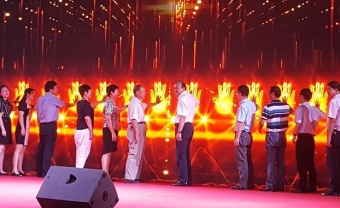 ( “慈善之声”启动仪式上,北仑广电全媒体的记者讲述“北仑妈妈和她的苗家女儿”的故事)