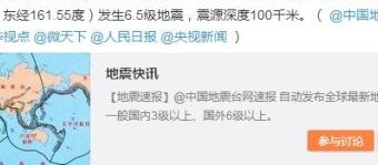中新网9月10日电 据国家地震台网官方微博消息,中国地震台网正式测定:09月10日03时31分在所罗门群岛(南纬9.80度,东经161.55度)发生6.5级地震,震源深度100千米。