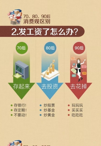 随着越来越多的90后步入职场,70后、80后、90后“三代同堂”也越来越普遍,理财观念形成的时代背景不同,对每代人的消费观造成了差异,那么你是哪一种呢?月光族?还是透支?又或者早已存款百万走上了人生巅峰?