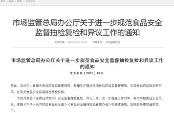 市场监管总局办公厅关于进一步规范食品安全监督抽检复检和异议工作的通知