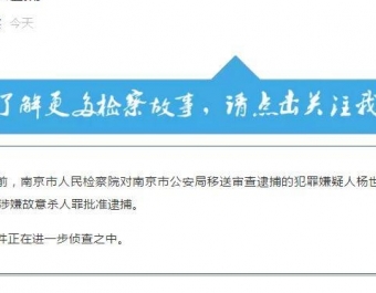 记者8月30日从江苏省南京市检察院了解到,日前,南京市检察院对南京市公安局移送审查逮捕的犯罪嫌疑人杨世松、杨际响以涉嫌故意杀人罪批准逮捕。