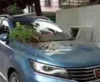 哐当!刚买一个月的爱车不幸被一个从天而降的花盆砸中