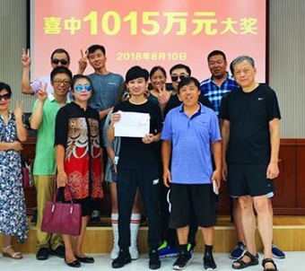 在双色球2018092期开奖中,天津彩民喜中当期一等奖1000万元。中奖彩票是一张合买的“12+1”复式票,在投注站站主带领下,十余位彩民公开亮相福彩中心办理了领奖手续。