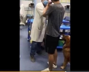 住在广西南宁的男子赵某在今日凌晨带着一只金毛闯入了民族医院的急诊室,要求医生为他的狗看病,最后在急诊室大闹20分钟之后赵某才被保安强行带走。