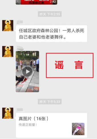 济宁市全媒体辟谣平台8月24讯 近期,济宁各微信群在传播一段画面较为血腥的视频,有网民趁机群发信息称“济宁一男子在任城区政府森林公园当街杀死自己的老婆和他老婆的舞伴”。
