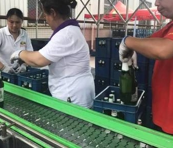 37度的高温闷热天气,为了保证市场供应,燕京啤酒(河南月山)有限公司联合车间和酿造车间的员工在车间干部的带领下,挥汗如雨的奋战在生产一线。