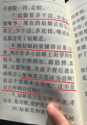 新人到民政局领结婚证,收到民政局赠送的名为《家和万事兴》的红色小书。打开一看,里面充斥着歧视女性、宣扬封建思想的伪科学内容:“姑娘要自重,露腿露胳膊是作贱自己”“孩子有先天性疾病是因为母亲性格不好”……河北邯郸复兴区民政局工作人员向媒体回应