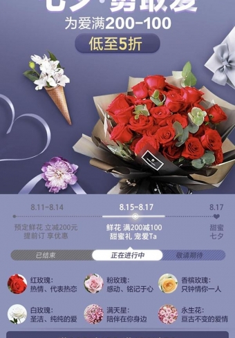 又逢七夕,一年一度的鹊桥相会剥去了别离的忧伤,演变为国人浪漫爱情的代名词。在这个日子,对于恋爱中的男女而言,最开心的莫过于收到心上人赠送的花束。今天,美团闪购对外发布七夕情人节当周(8月11日~16日)鲜花数据,七夕节鲜花销量较去年同期大涨615%,“